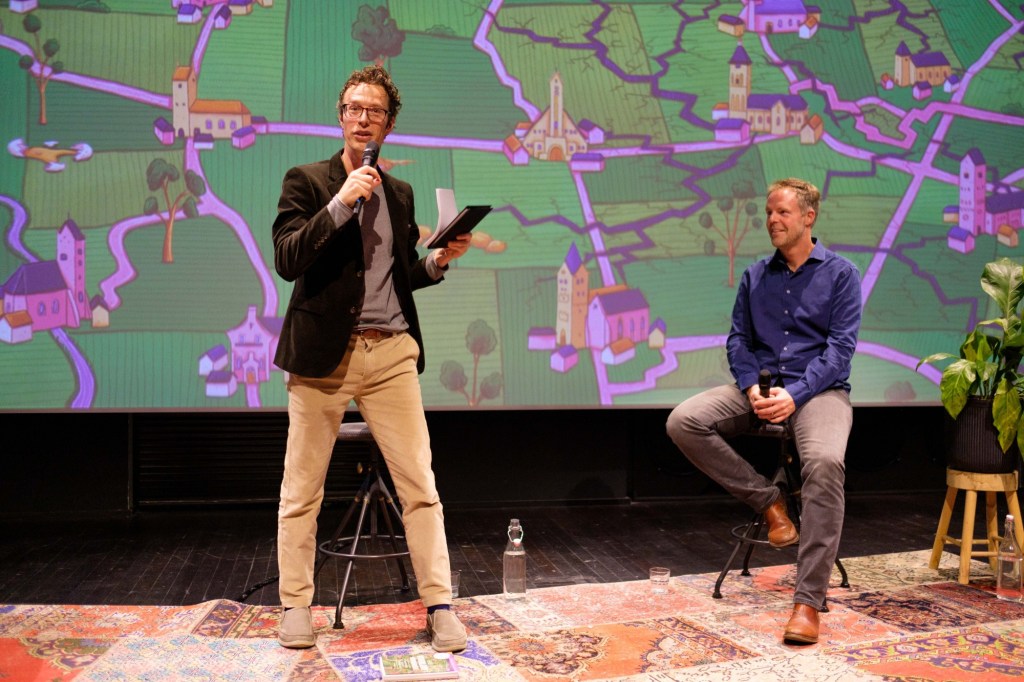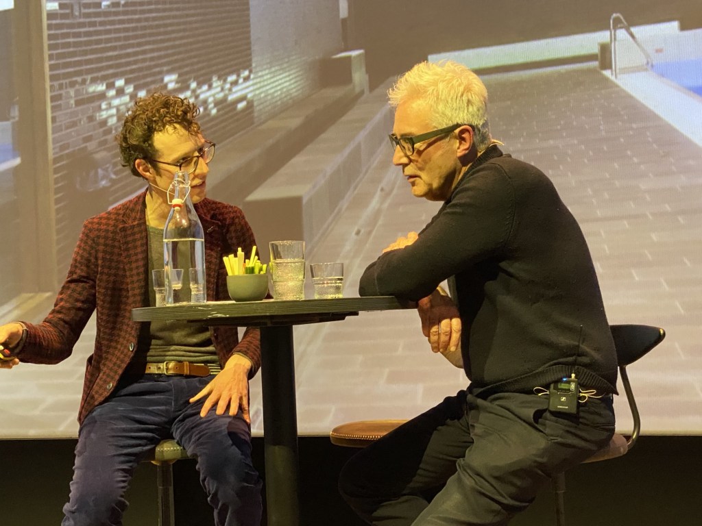 Voor Noorderzon doe ik al jaren een interviewserie, in samenwerking met Arts in Society en in voorbereiding met Thijs Lijster en Noorderzon. Maatschappelijke thema’s komen in het licht van kunst te staan. De laatste reeks heette Samen Leven. Ik sprak Marjan Slob, Thijs Lijster, Fokke Obbema en Maxim Februari (foto).
